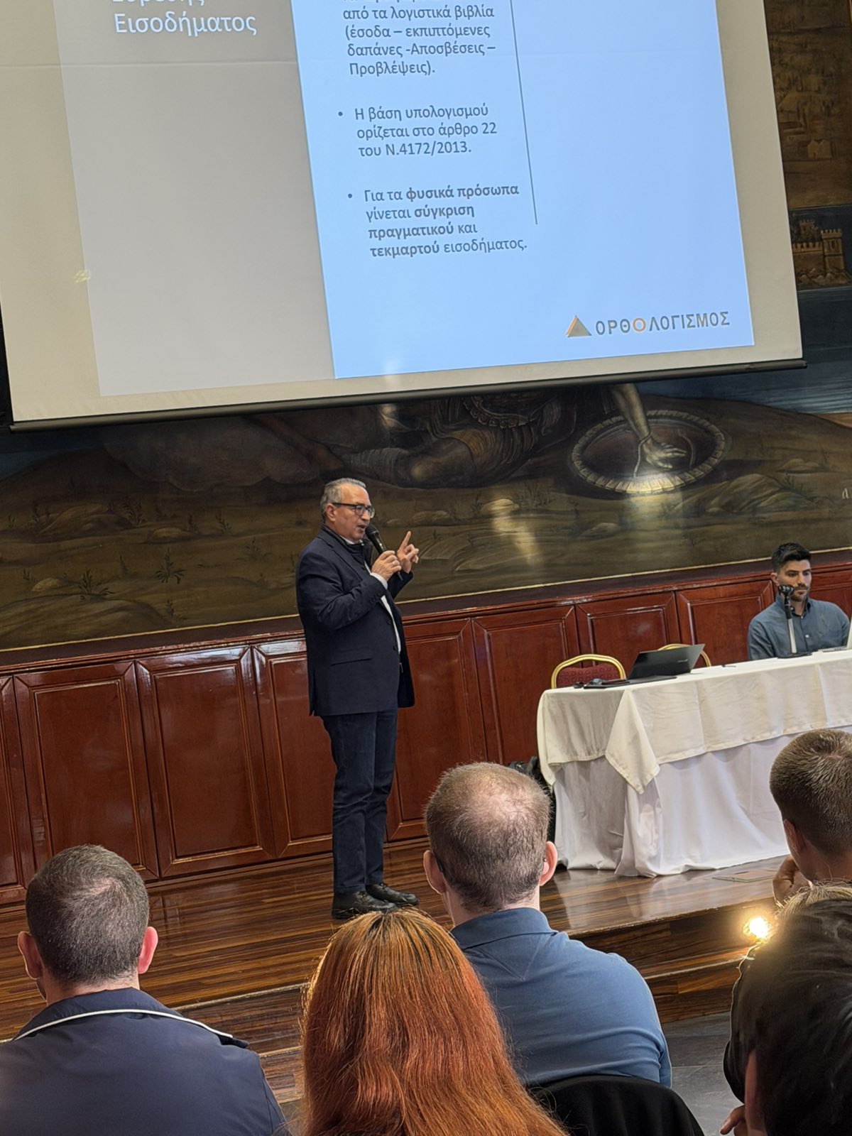 Κατά τη διάρκεια της ομιλίας αναλύθηκαν βασικά σημεία της φορολογίας φυσικών προσώπων, με έμφαση σε πρακτικές εφαρμογές και χρήσιμες κατευθύνσεις για την ορθή συμπλήρωση των φορολογικών δηλώσεων, γεφυρώνοντας τη θεωρητική γνώση με την επαγγελματική πρακτική.